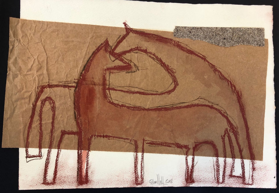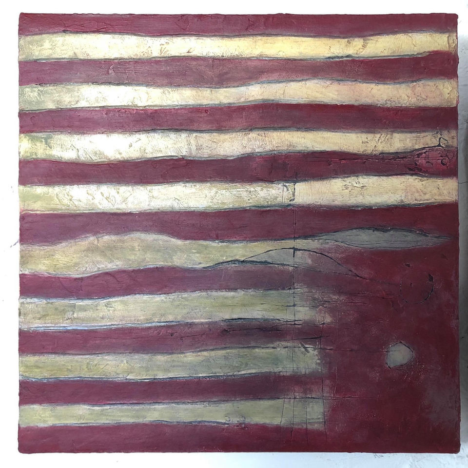 As a result then, my work is almost always heavily layered or textured. I am starting out on canvas, wood panel or paper. In combination with fabric, wood, paper and sometimes metal I will build up layers on my base. Those layers then get plastered over with a paste made with plaster of Paris, cement or wall plastering. A finished layer is then going to be marked with tools , scratched or broken up and painted and marked with different mediums with anything from pens to paints and pigments, only then to a add another layer on top of the next which again will get exposed in places to reveal what's underneath like pages in a book with hidden stories. It is a continuous process of building, defacing and rebuilding again and again. I like to search for something deeper in those layers. A glimpse of a memory, a connection, a dialogue with feelings and emotions. Or perhaps the meaning of the land and our core connection with our ancestors in left behind structures that have become a part of our landscape.